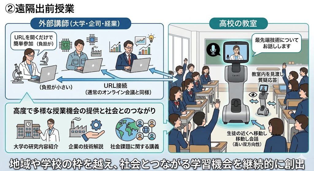 ② 遠隔出前授業(外部講師がURL接続で実施)