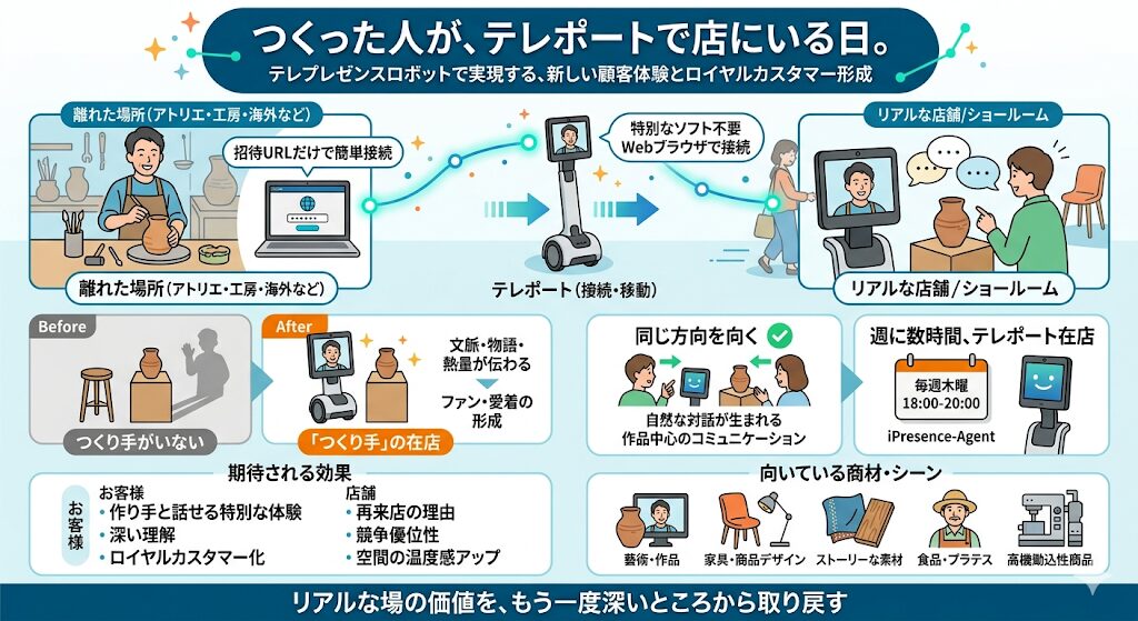 - 遠隔地からのリアルタイム対応(テレプレゼンス用途)